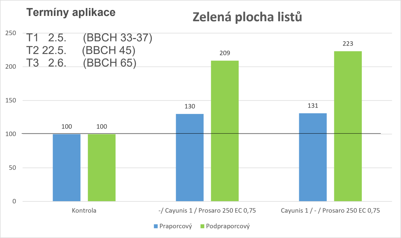 Včasná aplikace fungicidu Cayunis® dlouhodobě ochrání rostliny od spodních listových pater (Libčany, 2023)